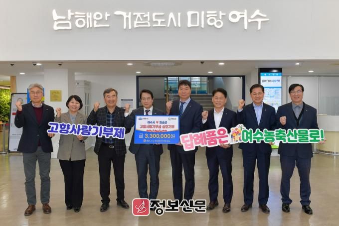 ![]() 전남 화순 능주농협(조합장 노종진)이 여수시에 고향사랑기부금 330만 원을 전달했다. |