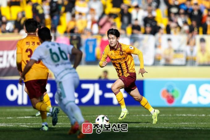 광주는 전반 시작과 동시에 활발한 공격으로 득점을 노렸다. 3분 만에 아크 서클 주변에서 공을 잡은 정호연이 크로스를 올렸다. 문전 앞에 있던 문민서가 헤더 슈팅으로 연결했지만, 골대 맞고 나오며 아쉬움을 삼켰다. 8분, 전북이 반격에 나섰다. 광주의 후방 빌드업 과정에서 강한 전방 압박을 가해 공을 빼앗았다. 박스 안으로 침투하던 김진규가 기회를 맞았지만, 아웃사이드로 툭 갖다 댄 슛이 골문 밖으로 벗어났다.