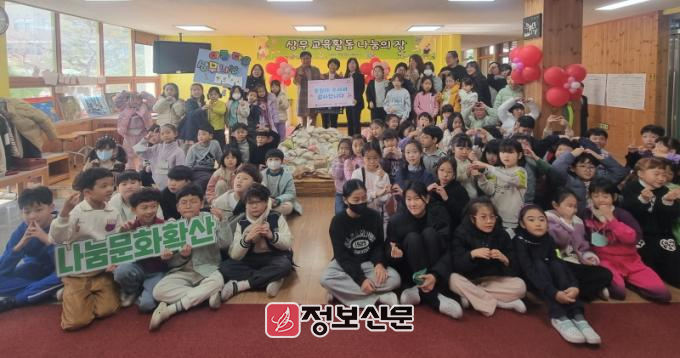 상무초등학교 학생들은 2021년부터 개교기념일(12월 1일)을 기념해 코로나19 극복을 위한 자발적 나눔활동을 펼치고 있으며 올해는 백미 약 200봉지와 정성껏 눌러쓴 편지를 전달했다.