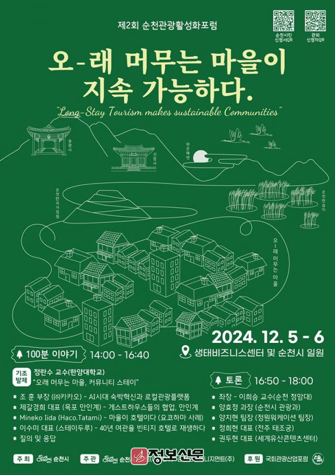 ![]() 순천시, 제2회 순천관광활성화포럼 오래 머무는 마을이 지속가능하다 개최 |
