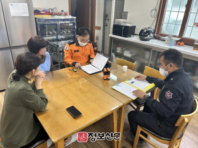 이날 광영119안전센터는 소방안전관리자와 함께 내부 피난 경로와 소방시설 유지관리 상태를 확인하고 시설 현황 청취 및 화재 예방 안전교육을 실시하였다.