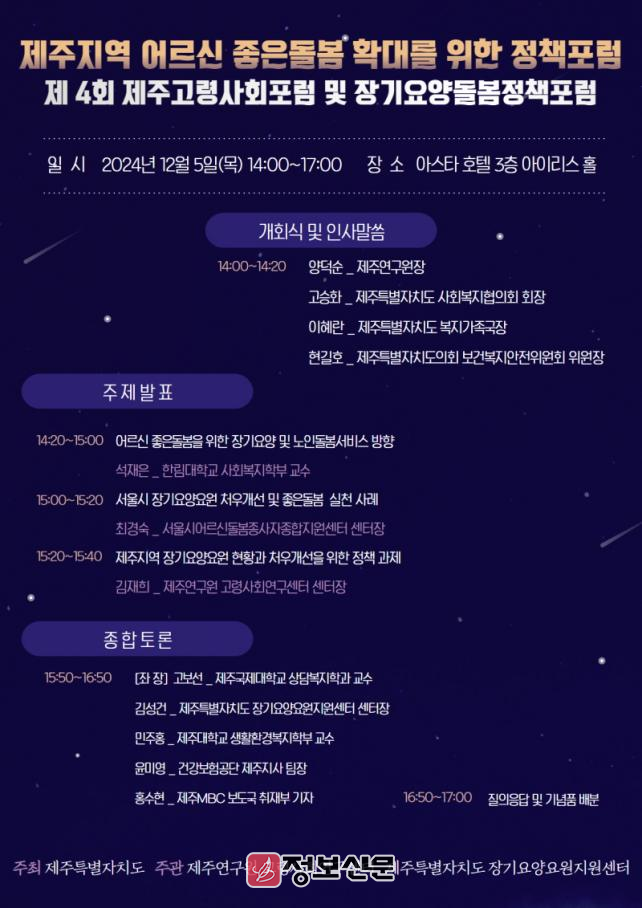 한편, 이번 포럼은 제주연구원 고령사회연구센터의 ‘제4회 제주고령사회포럼’과 병행하여 개최한다.