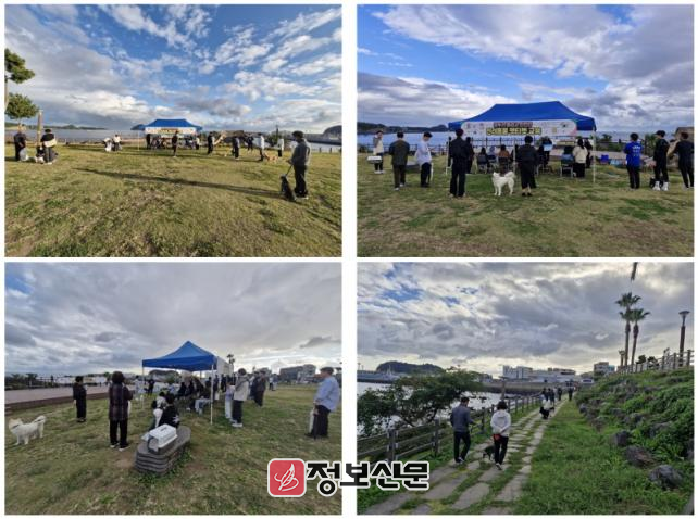 이번 반려동물 펫티켓 교육은 서귀포시에서 처음 실시한 교육으로 서귀포시 자구리공원에서 전문훈련사 2명과 함께 시민 15가구(반려견 동반 30명)가 참석하여 실시하였다.