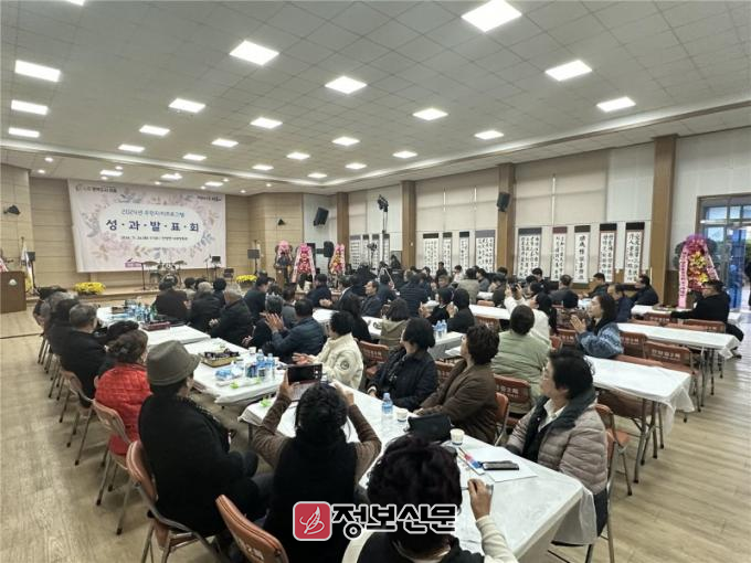 이번 행사는 1부 프로그램별(▲요가 ▲색소폰 ▲하모니카 ▲라인댄스) 시연 및 ▲서예교실 작품전시와 2부 축하공연 및 만찬으로 나누어 진행되었으며 참가회원들은 올해 진행한 다양한 프로그램을 소개하고, 이들이 얻은 경험과 성과를 면민들과 함께 나누는 시간이 되었다.
