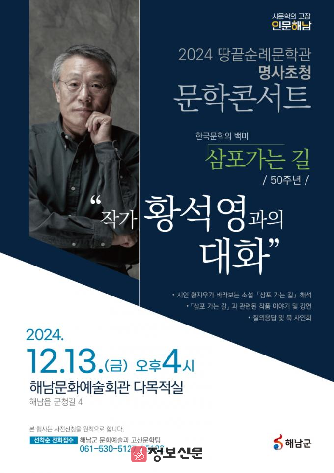 ![]() 해남 땅끝순례문학관, 황석영 소설가 초청 문학콘서트 개최 |