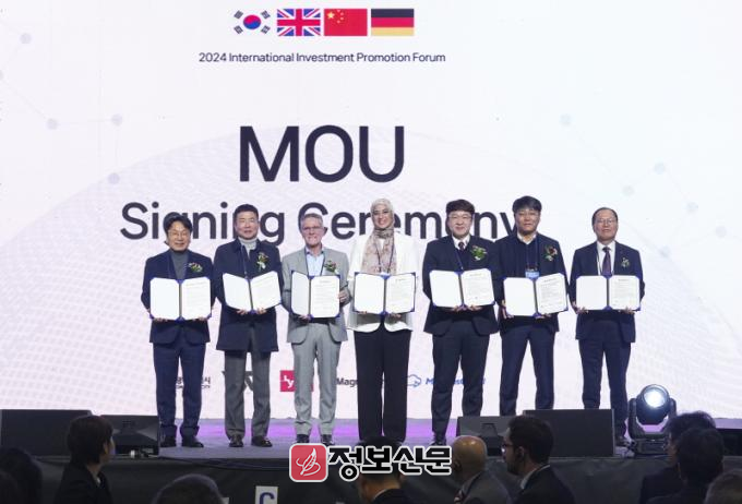 강기정 광주광역시장은 이날 ‘2024 국제투자유치포럼’에서 영국의 VSS Global, 중국의 리릭로봇, 독일의 모션스클라우드 등 3개 외국인 투자기업과 투자협약(MOU)을 체결했다.