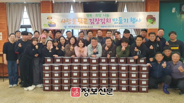 이날 행사에는 조합원과 가족 50여명이 참여해 김장김치 300포기를 담가 초록우산어린이재단, 제주시 독거노인지원센터와 제주이주민센터에 전달했다.