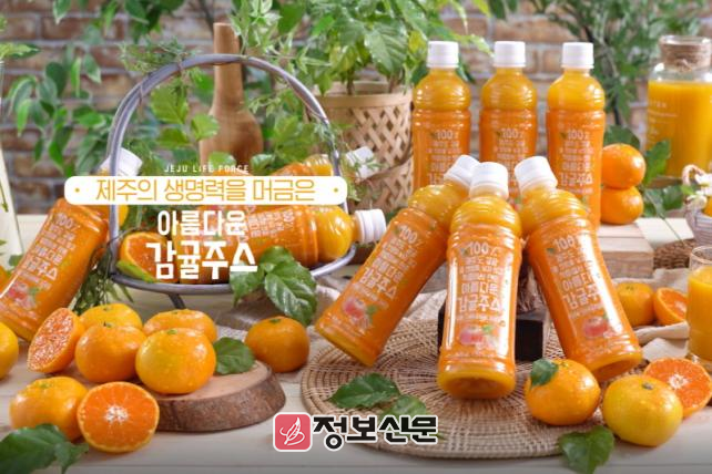 ‘아름다운 감귤주스’는 물 한 방울 넣지 않고 오로지 제주에서 생산되고 있는 감귤 원액을 착즙한 음료다. 340ml 주스 한 병에 감귤 약 8~9개의 과즙이 들어간다.