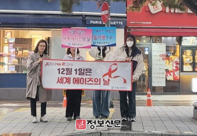 지난달 29일 정읍우체국 일대에서 진행된 이번 캠페인은 ‘에이즈는 일상 접촉으로는 감염되지 않습니다’라는 메시지를 중심으로 감염 경로와 예방 요령을 시민들에게 알렸다.