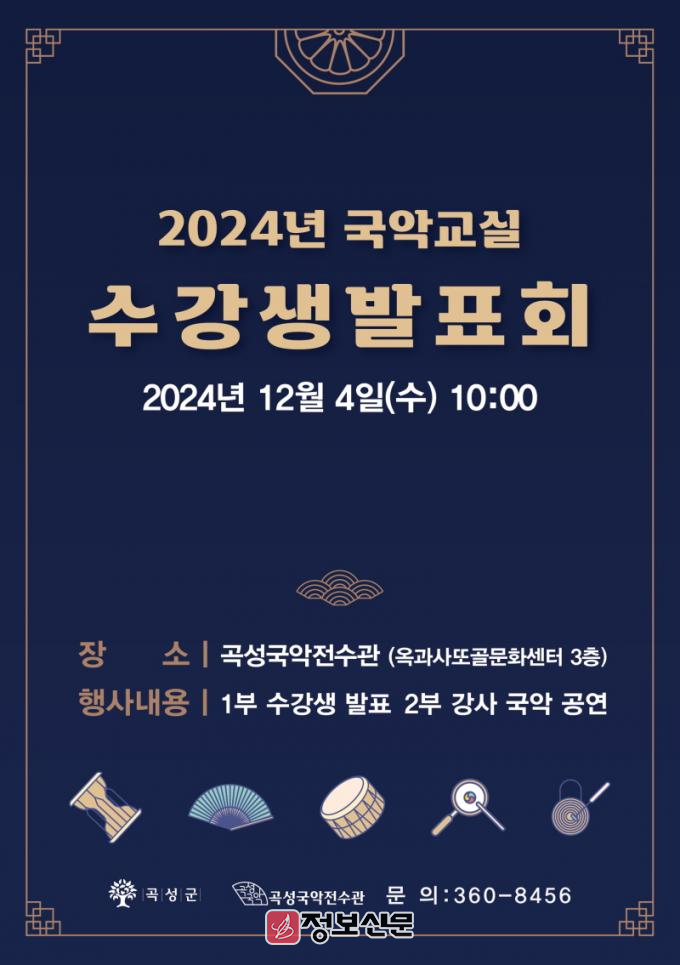 ![]() 곡성국악전수관, 2024년‘국악교실 수강생 발표회’개최 |