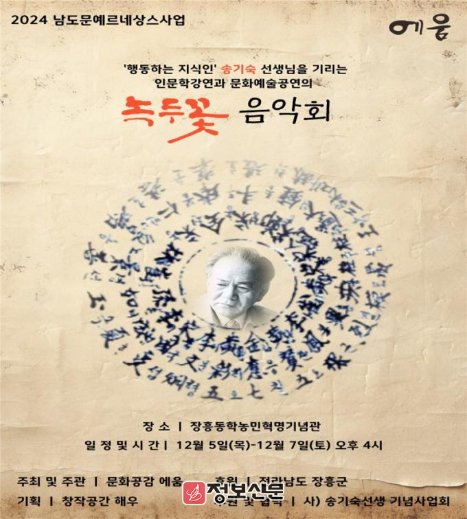 이번 녹두꽃 음악회는 전라남도와 장흥군이 후원하고 사)송기숙선생기념사업회가 협력하며, 전남전문예술단체 ’문화공감 에움‘이 기획, 연출한다.