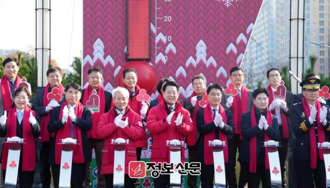 도청 광장 ‘사랑의 온도탑’은 모금 목표액인 114억 원에 도달하면 100℃를 달성하게 된다.