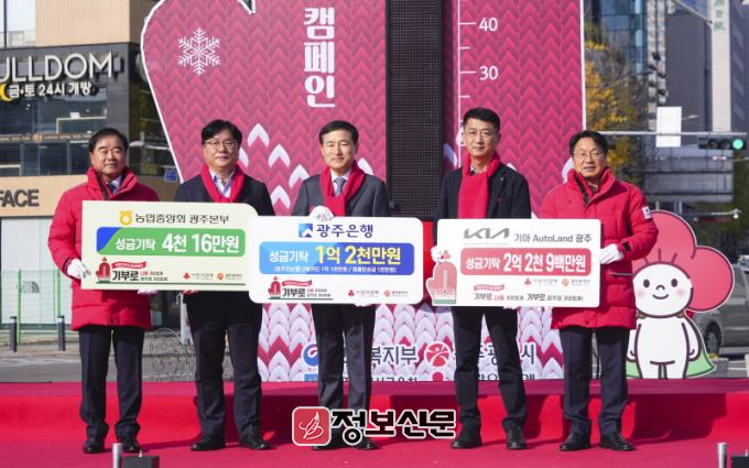 강기정 광주시장은 “광주에 희망의 기운이 넘칠 수 있도록 연대와 나눔의 마음을 모아 달라”며 “지역사회와 함께 사랑의온도탑 100도 달성에 최선을 다하겠다”고 말했다.
