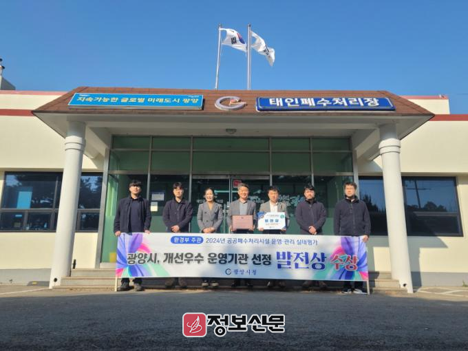 광양시는 개선우수 운영기관으로 선정됨에 따라 지난달 28일부터 29일까지 제주도에서 열린 공공폐수처리시설 연찬회에서 ‘발전상’을 수상해 포상금 및 인증패를 받았다.