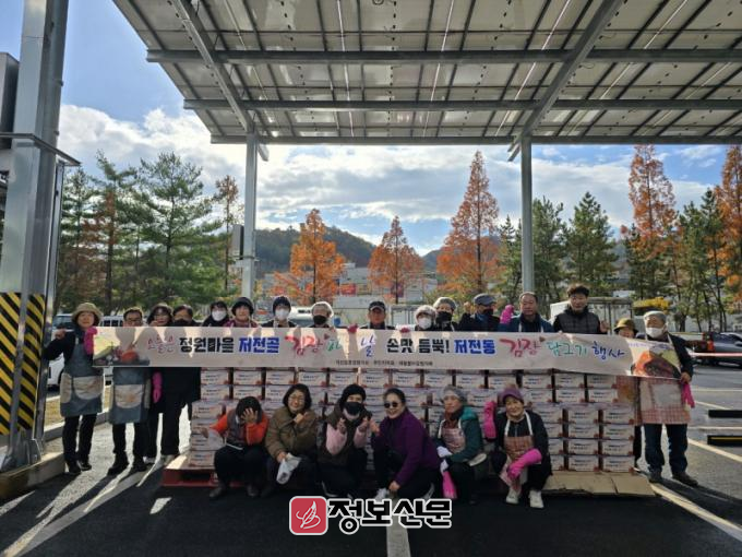 이날 행사는 저전동 2024년 주민참여예산 역량강화사업비로 진행되었으며, 농산물도매시장에서 절임배추와 과일을 후원받았다. 추위도 잊은 채 직능단체 회원 모두가 정성으로 김장김치를 만들어 관내 저소득층과 경로당 150여세대에 직접 방문하여 김치를 배달하면서 안부를 살폈다.