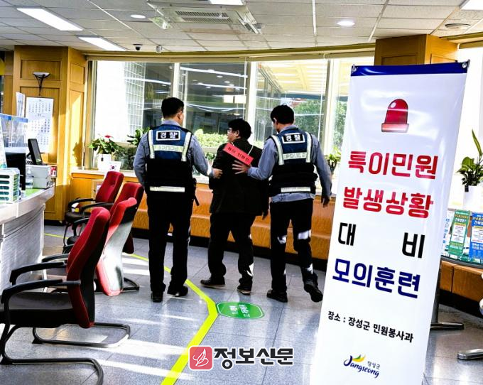 장성군 관계자는 “정기적인 특이민원 대비훈련을 통해 민원인과 공무원 모두의 안전을 상시 확보할 수 있도록 노력하겠다”고 말했다.
