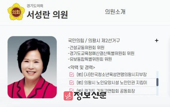 ![]() [사진 제공 = 신천지예수교회]경기도의회 서성란 의원 홈페이지 캡쳐본. |