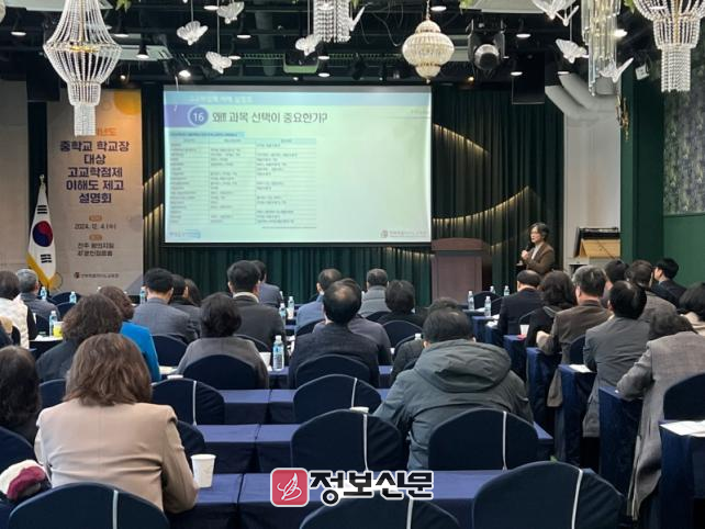 ![]() 전북특별자치도교육청, 중학교 교장 대상 고교학점제 설명회 개최 |
