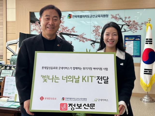 김왕규 전북특별자치도군산교육지원청교육장은 이번 지원을 통해 다문화가정, 조손가정 등 보다 도움이 필요한 복지사각지대에 있는 여아들을 함께 발굴하고 지원할 수 있는 기회가 되었다” 며“군산 지역 내 여아들의 건강한 성장을 위해 지원해주신 롯데칠성음료와 굿네이버스에 감사하다”고 전했다.