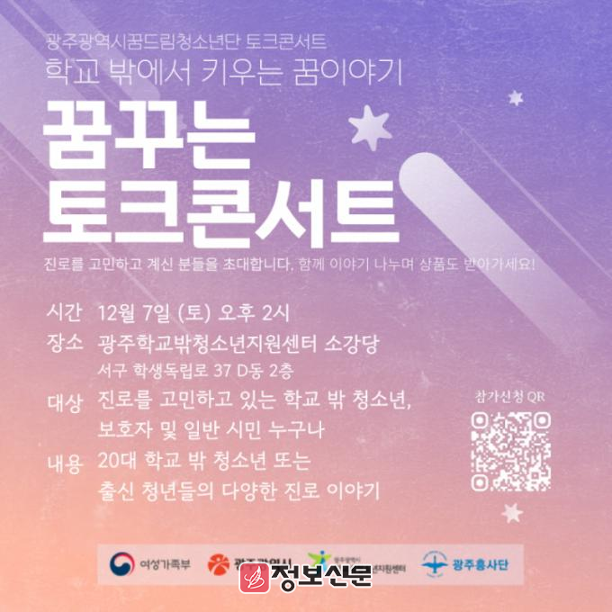 ![]() 광주광역시, 학교밖청소년 ‘꿈꾸는 토크콘서트’ 개최 |