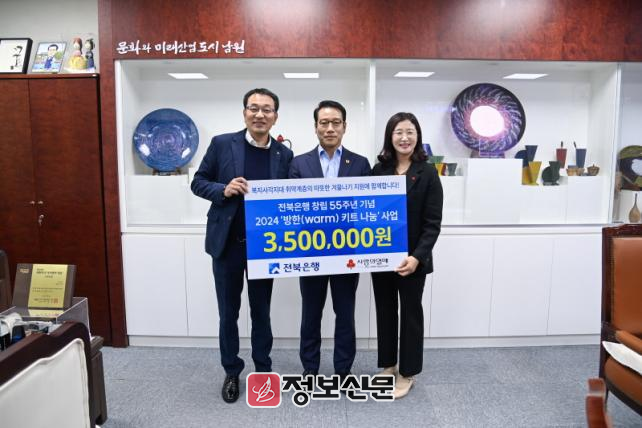 한편, 전북은행은 매년 보건위생물품과 방한키트를 기탁하며 지역사회의 취약계층을 위한 꾸준한 나눔 활동을 이어가고 있다.