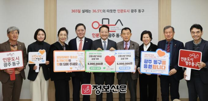 동구는 최근 조현주 남광주한의원장(동구 한의사협회 회장)을 비롯해 김영 한국여성경제인연합회 전남지회장과 김 회장의 배우자인 박승현 영진종합건설 회장, 광주 북구를 사랑하는 모임 ‘북광회’ 등이 각각 5백만 원을 기부했다고 밝혔다.