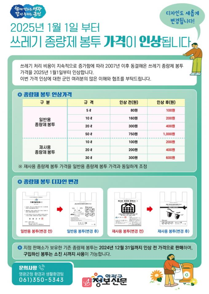![]() 영광군, 2025년 1월부터 쓰레기 종량제 봉투 가격 인상 |