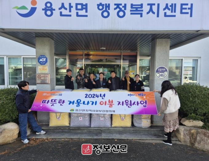 백창선 용산면장은 “이불 지원사업이 겨울철 저소득층 가구에 조금이나마 도움이 되길 바라며, 앞으로도 지역사회의 복지 향상을 위해 노력하겠다”고 말했다.
