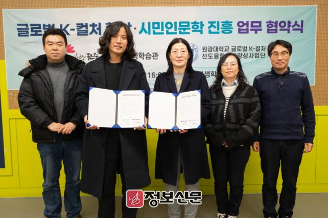 전주시평생학습관은 6일 원광대학교 K-컬처 선도융합인재양성사업단(단장 강연호)과 인문학 활성화를 위한 상생 업무 협약을 체결했다.