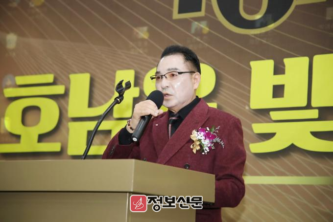 ![]() ▲(사)대한기자협회 광주·전남협회가 주최한 2024년 ‘제6회 호남을 빛낸 인물대상’ 시상식에서 정승현 협회장이 대회사를 하고 있다. |