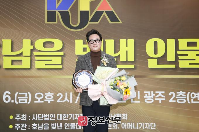 ![]() ▲ 지난 12월 6일 광주 홀리데이 인 광주호텔 2층 연회장에서 열린 ‘2024년 제6회 호남을 빛낸 인물 대상’에서 (사진_우측) 백민석 주식회사 현농경영연구소 대표이사가 경제부문 ‘모범기업’대상을 수상하고 기념촬영을 하고 있다. |