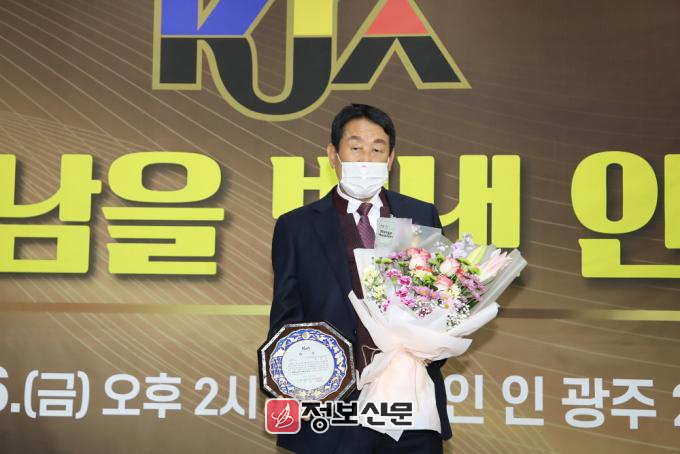 ![]() ▲ 지난 12월 6일 광주 서구 홀리데이 인 광주호텔 2층 연회장에서 열린 ‘2024년 제6회 호남을 빛낸 인물 대상’에서 경제부문 ‘운송사업혁신’대상을 수상한 최무진 광주광역시화물자동차운송사업협회 이사장 |