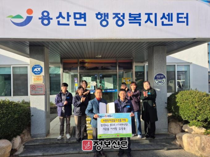 지난 9일 용산면 가온뜰협동조합 김성용 이사장은 쌀 10kg 60포(173만원 상당)를 기탁했다고 밝혔다.