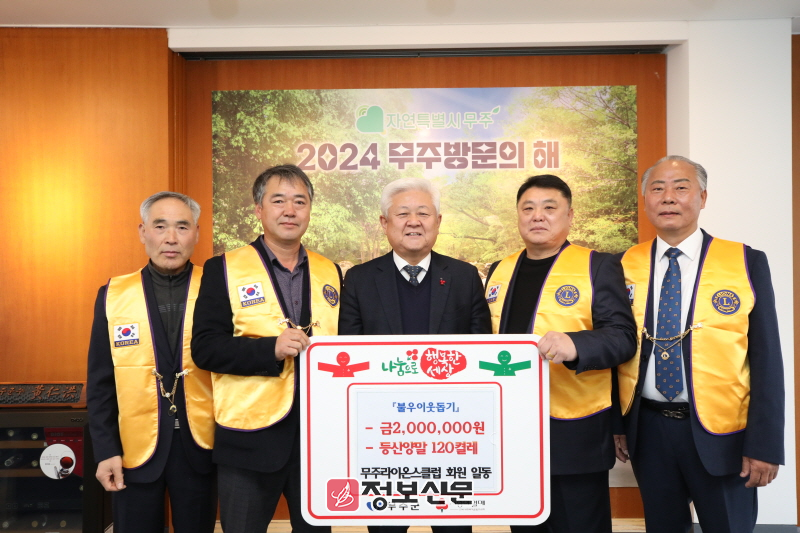 한편, 무주라이온스클럽은 회원 23명으로 구성된 NGO 봉사단체로 2015년부터 지금까지 불우이웃 돕기 성금과 성품을 기탁해 이웃간 서로 돕는 상부상조의 전통 미덕을 널리 확산시키는데 앞장서고 있다.