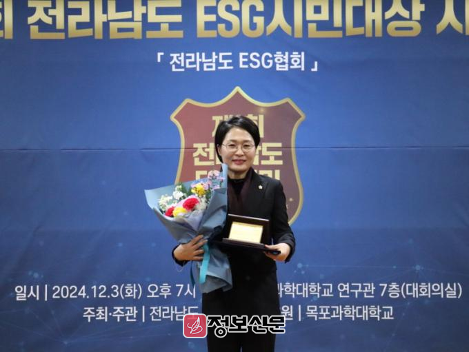 ![]() 여수시의회 민덕희 의원, 전라남도 ESG협회 시민 대상 수상 |