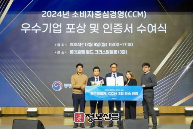 제주엔젤카는 지난 2020년 첫 CCM 인증을 받은 이후 지속적으로 소비자 중심의 경영을 실천해 오고 있다. 특히 최근 4년간 소비자 관련 법 및 공정거래법을 위반한 기업은 심사에서 제외되는 엄격한 기준을 통과한 결과, 2024년 12월 3회 연속 CCM 인증을 획득하게 됐다.