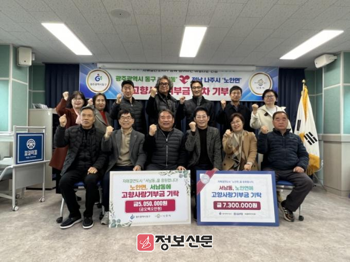 ![]() 광주시 동구 서남동, 나주시 노안면과 고향사랑기금 상호 기부 |