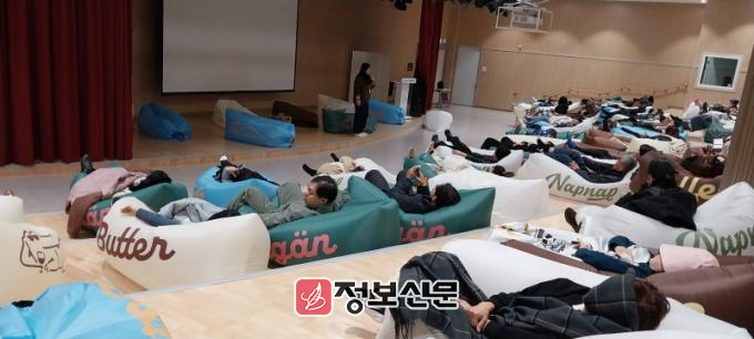 상담콘서트에 참여한 시민 60여 명은 에어쇼파에서 편안하게 낮잠을 즐기며 재충전하는 시간을 가졌다. 주최 측은 수면 중 심박수 변화를 측정하고, 이를 바탕으로 참여