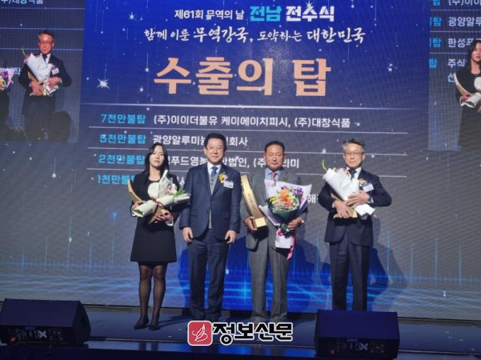 지역 토착기업인 ㈜대창식품을 경영하면서 올해 목포상공회의소 제25대 회장에 취임한 정현택 대표는 “평소 달성하기 힘든 줄만 생각했던 7000만불 수출탑 수상은 지역민의 관심과 성원 덕분”이라며 “앞으로도 지속적인 기술 혁신과 전략을 통해 글로벌 시장에서 한국전통식품인 김을 알리는데 앞장서겠다”고 말했다.