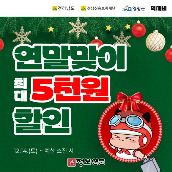 영광군 관계자는 “연말을 맞이하여 진행하는 특별 이벤트인 만큼 먹깨비로 주문해서 할인 쿠폰도 받고, 소상공인에게 도움이 되는 착한 소비에도 많이 동참하여 주시기 바란다.”고 말했다.
