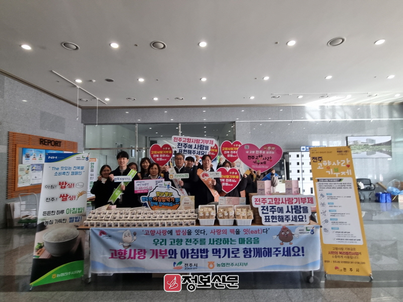전주시는 11일 농촌진흥청에서 전북특별자치도, 농협 전주시지부와 함께 ‘우리 고향 전주를 사랑하는 마음을 전하세요’를 주제로 고향사랑기부제 홍보활동을 전개했다.