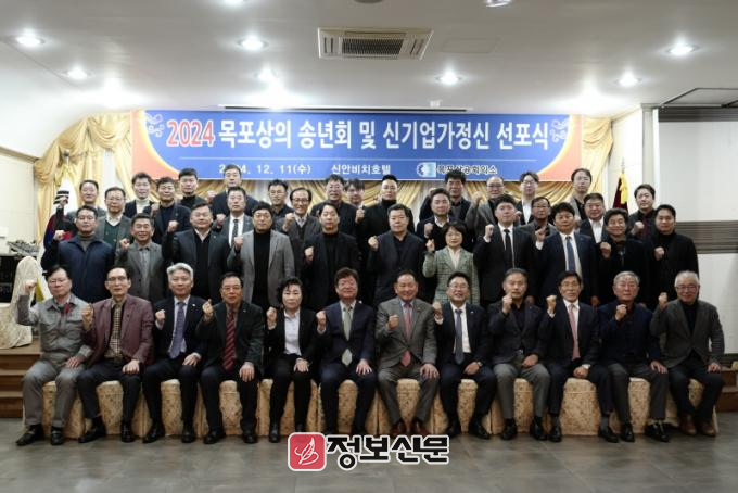목포상공회의소(회장 정현택)는 지난 11일 신안비치호텔에서 진행된 의원송년회에서 ‘신기업가정신 선포식’을 개최했으며, 목포상의 정현택 회장과 상공의원등 60여명이 참석하였다.