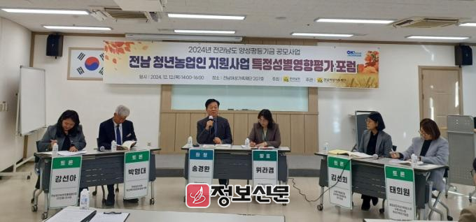 전남도는 전문연구기관인 전남여성가족재단에 의뢰해 ‘전남 청년농업인 지원사업’을 2024년 특정성별영향평가 사업으로 선정, 성평등에 미칠 영향을 분석해 정책 개선방안을 도출했다.