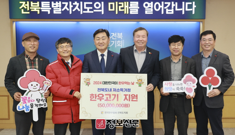전북특별자치도는 (사)전국한우협회 전북도지회(회장 정윤섭)가 ‘대한민국이 한우 먹는 날’을 기념해 진행한 대대적인 모금활동의 성금으로 5천만 원 상당의 한우고기를 기탁했다고 12일 밝혔다.