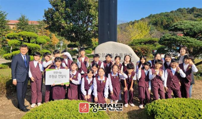 ![]() (사진제공=굿네이버스 호남충청권역본부)굿네이버스 호남충청권역본부 - 광양제철초등학교 5학년 1반 학생 및 교사와 후원금 전달식 진행 사진 |