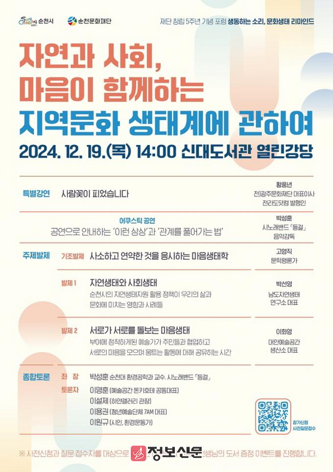 ![]() (재)순천문화재단, ‘창립 5주년 기념 포럼’ 개최 |
