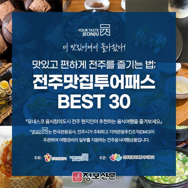 전주시 지역 관광 추진조직(전주시 DMO)은 소상공인과 청년 창업자, 음식 명인(名人)이 운영하는 현지인 맛집 30곳을 선정해 쿠팡 및 신한카드 마이샵을 통해 20~30% 할인된 요금으로 즐길 수 있는 전주 맛집 투어 패스를 선보인다고 13일 밝혔다.