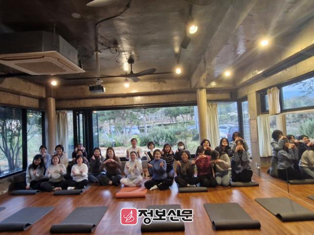 연수내용은 △몸과 마음을 치유하는 명상 활동 및 채식 요리 체험 △선·후배 간 정보 공유 및 사례 나눔 활동으로 구성하여 직무 스트레스 해소와 재충전 및 상호 소통 공감하는 시간을 가질 수 있도록 하였다.