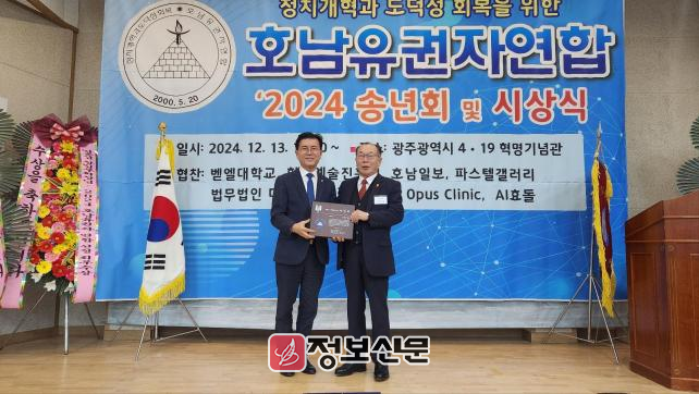![]() 전북특별자치도의회 박용근 의원, 2024호남유권자 연합 최우수 광역의원 선정 |