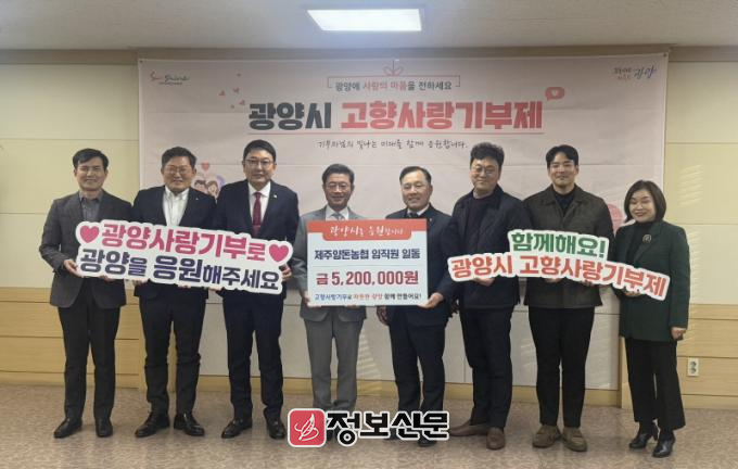 ![]() 고권진 제주양돈농협 조합장, 광양시에 고향사랑 기부금 전달 |